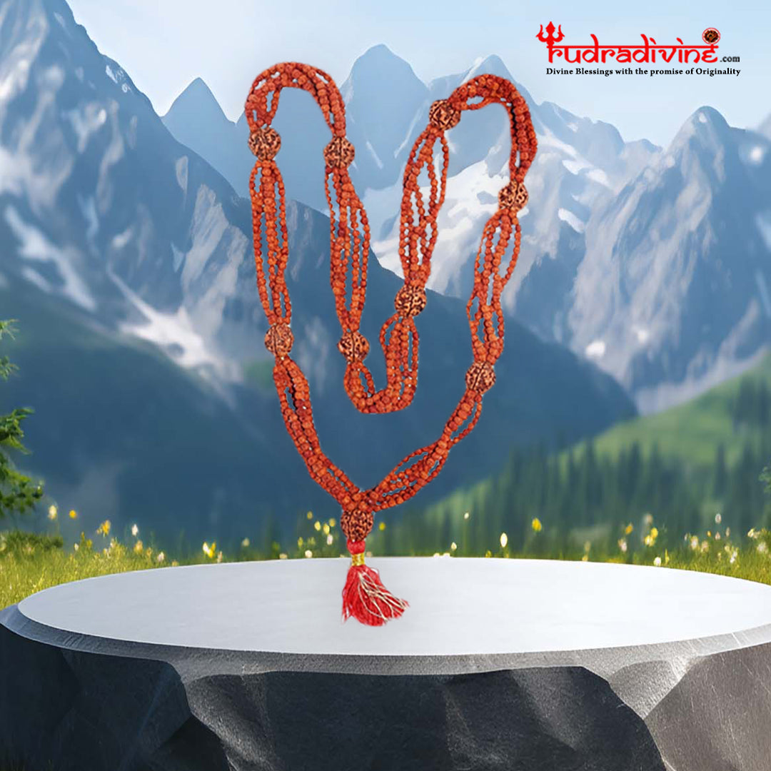 This represents Lord Shiva, the symbol of auspiciousness. The wearer of five Mukhi mala gains health and peace. Five Mukhi Rudraksha monitors blood pressure and cardiac ailments. Five Mukhi mala is also used for Japa. By wearing the mala the wearer-s mind remains peaceful. There is no suspicion about the fact that the wearer of Five Faced Rudraksha mala never gets untimely death. Malefic effect of Jupiter is considered to cause lack of peace of mind, utter poverty, lack of harmony, diseases of fat, Kidney, thigh, ear, diabetes etc. Five Mukhi is therefore suggested to sublimate the malefic effects of Jupiter. Agni (fire) purifies the metals and similarly five faced Rudraksha rectifies all the vices and faults of Jeeva and makes him pure and Jeeva gains the form of Pashupati i.e. the Lord of all creatures after becoming free from the animal instincts. By wearing its mala the wearer's mind remains peaceful. A mala of five face Rudraksha is also worn. It keeps the blood pressure normal.